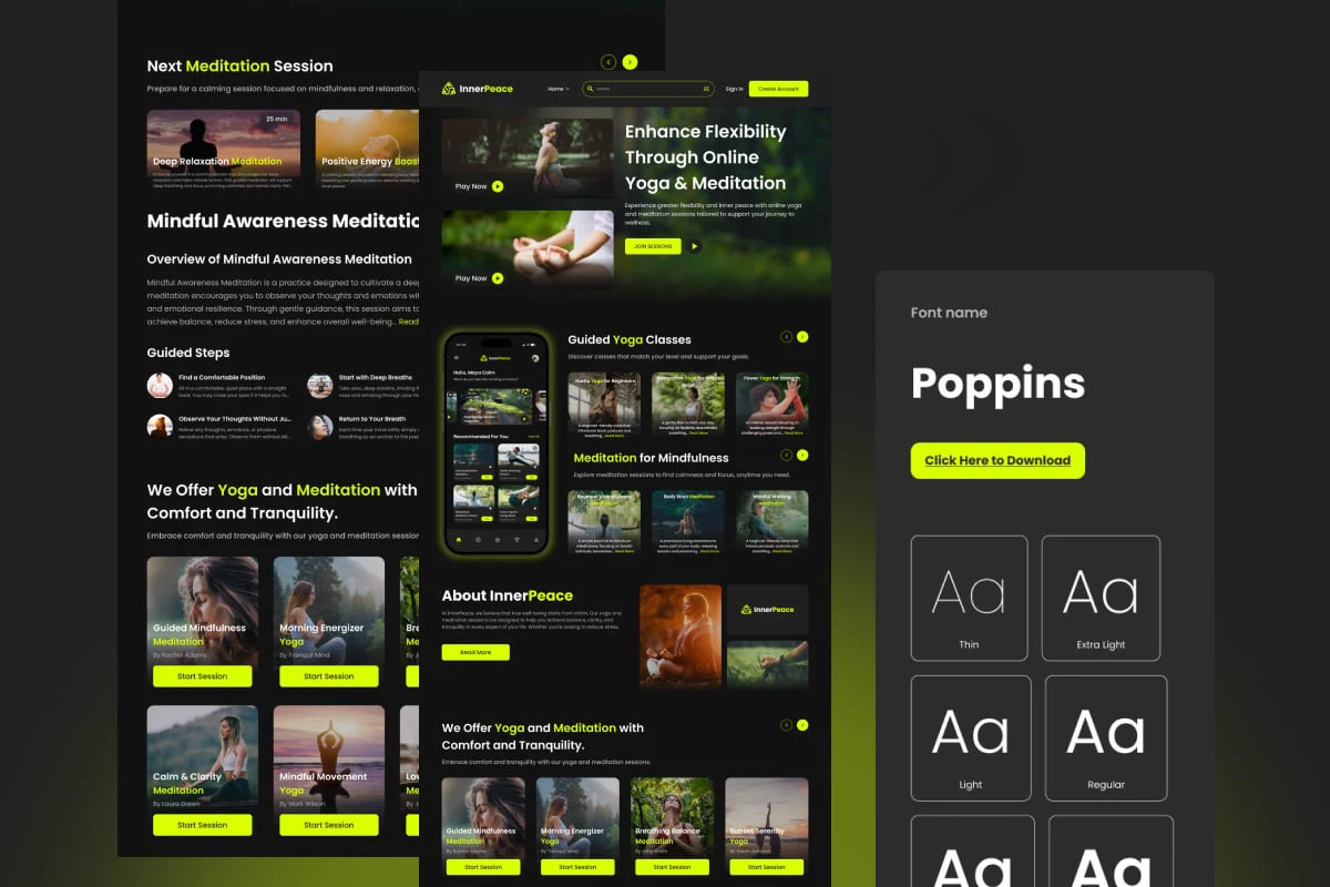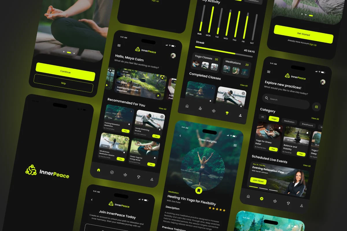 InnerPeace was built to be more than a meditation app — it’s a sanctuary in your pocket. With a soft visual rhythm, warm tones, and human-centered interactions, we created an experience that lowers cognitive load and raises emotional clarity. Every gesture, tone, and pixel is designed to foster stillness, focus, and mindful presence.
